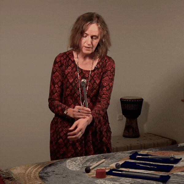 ✅ 4. Bring the vibrating fork near your ears, hold it over the chest/heart space, or lightly place the stem on areas of tension to relax the body and calm the mind